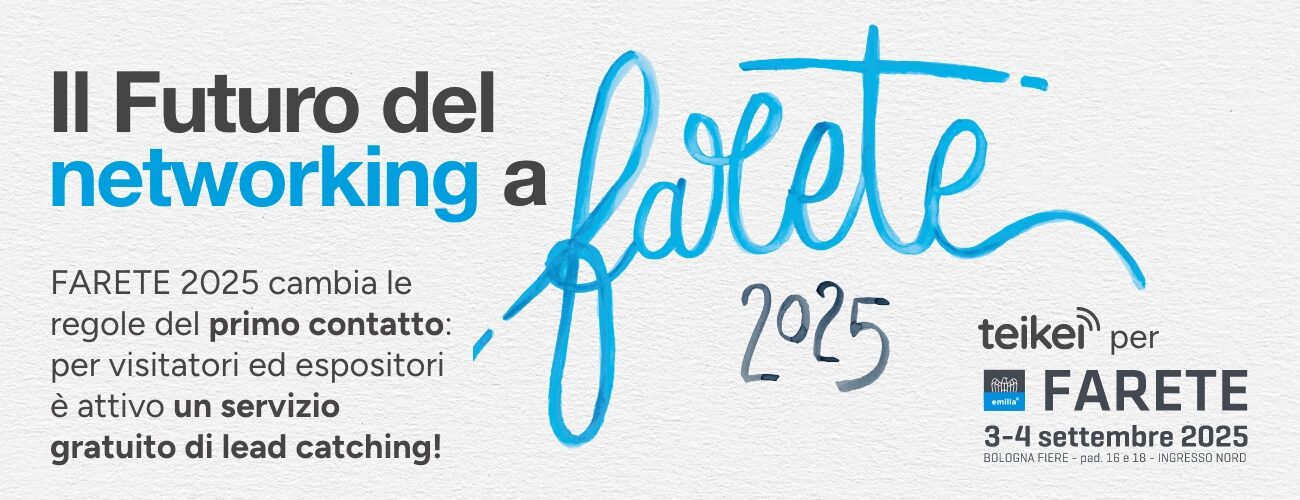 A partire da FARETE 2025 tutto cambia: grazie a Teikei Connect Lead Catching – il sistema di gestione del primo contatto e di acquisizione dei lead adottato da Confindustria Emilia Centro – ogni espositore e visitatore avrà accesso a uno strumento gratuito, paperless e smart per raccogliere e gestisce contatti in modo semplice, veloce e sicuro.